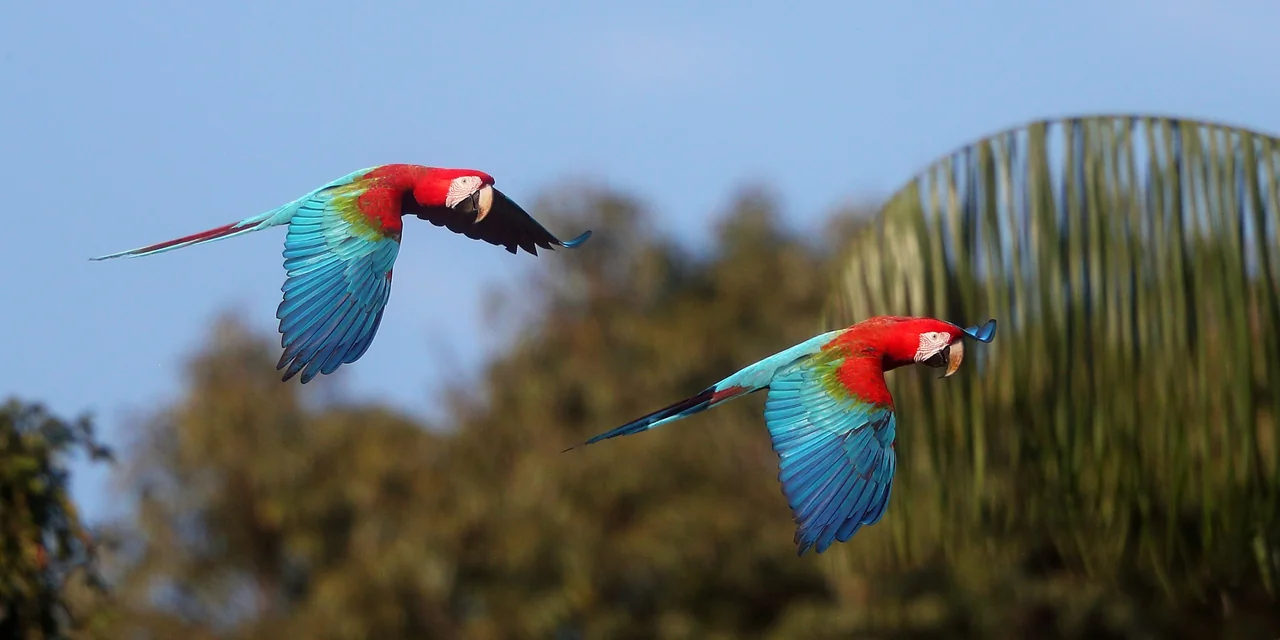 Bien que protégé, l’Ara chloroptère subit la déforestation et le braconnage. Les efforts de conservation (comme les parcs nationaux en Amazonie) sont cruciaux pour préserver ce joyau volant.